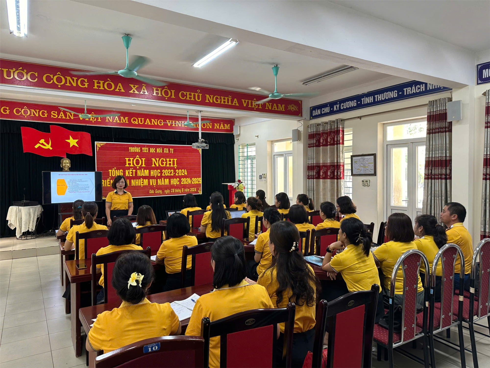 Chiều ngày 28 tháng 8 năm 2024, tại phòng Hội đồng trường Tiểu học Ngô Gia Tự, 100% CBGVNV nhà trường đã tham dự Hội nghị Tổng kết năm học 2023-2024; Triển khai nhiệm vụ trọng tâm năm học 2024-2025.