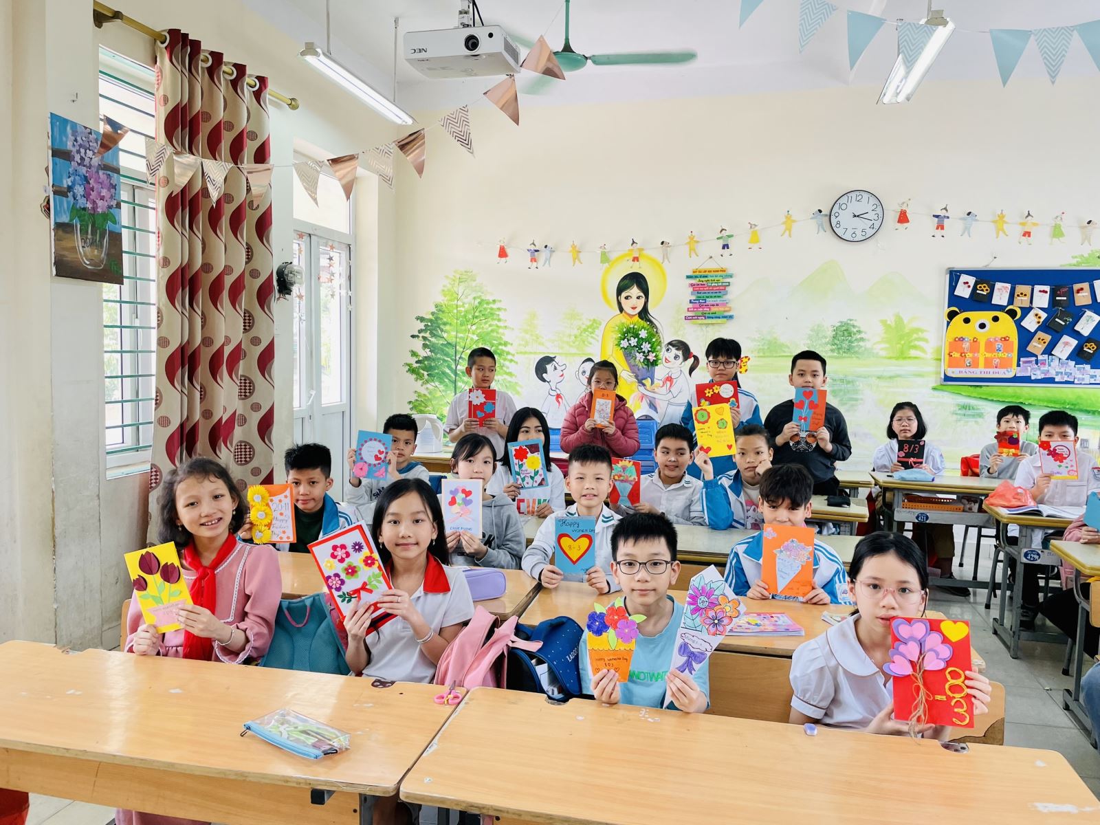 Hòa trong không khí vui tươi, phấn khởi chào mừng 113 năm ngày Quốc tế phụ nữ 8/3 và cuộc khởi nghĩa Hai Bà Trưng, Liên đội nhà trường phối hợp cùng giáo viên chủ nhiệm của các lớp đã tổ chức các hoạt động trải nghiệm trang trí hoa, vẽ tranh, sáng tác thơ, làm thiệp chúc mừng với chủ đề “Mẹ và cô trong mắt em” được tổ chức vào tuần lễ chào mừng. Hoạt động trải nghiệm này được thực hiện ngay tại các lớp học.