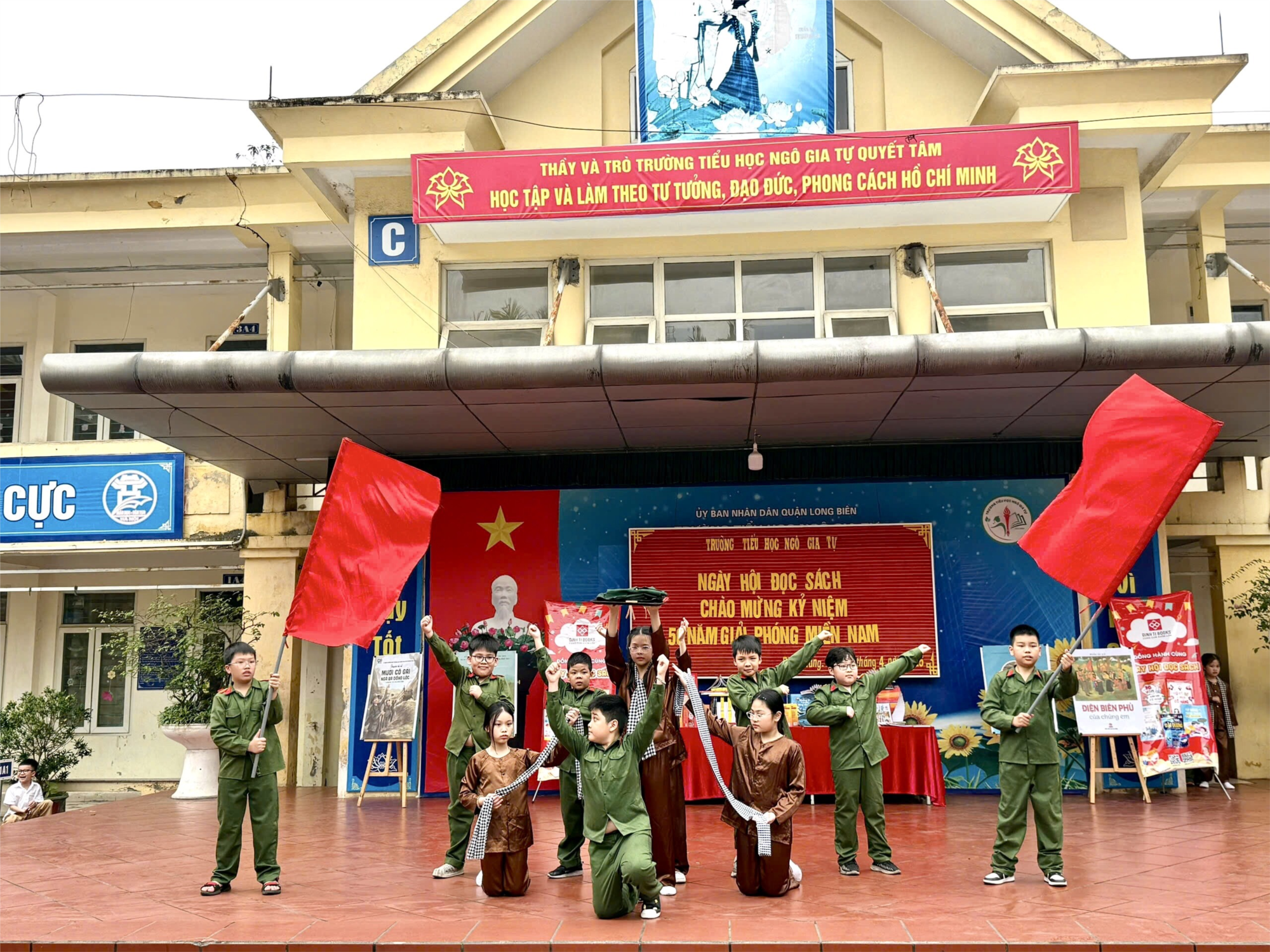 Thực hiện Quyết định số 284/QĐ-TTg ngày 24/02/2014 về Ngày sách Việt Nam (21/4) của Thủ tướng Chính phủ; Thực hiện Công văn số 206/PGD&ĐT ngày 17/9/2024 của Phòng GD&ĐT về việc Hướng dẫn công tác thư viện trường học năm học 2022 - 2023; Kế hoạch hoạt động thư viện năm học 2024 – 2025 của Trường Tiểu học Ngô Gia Tự. Sáng ngày 28/04/2025, Trường Tiểu học Ngô Gia Tự tổ chức Ngày hội đọc sách với chủ đề “Cùng sách bước vào kỷ nguyên vươn mình của dân tộc”.Với mong muốn khuyến khích, phát triển phong trào đọc sách trong nhà trường, nâng cao văn hóa đọc. Tôn vinh giá trị của sách, khẳng định vị trí, vai trò và tầm quan trọng của sách trong công tác học tập, giảng dạy cũng như trong cuộc sống. Khuyến khích và khơi dậy niềm đam mê đọc sách cho giáo viên và học sinh. Tạo sân chơi lành mạnh, thân thiện cho học sinh, giúp các con hình thành thói quen đọc ham đọc sách, biết tìm tòi, sáng tạo.