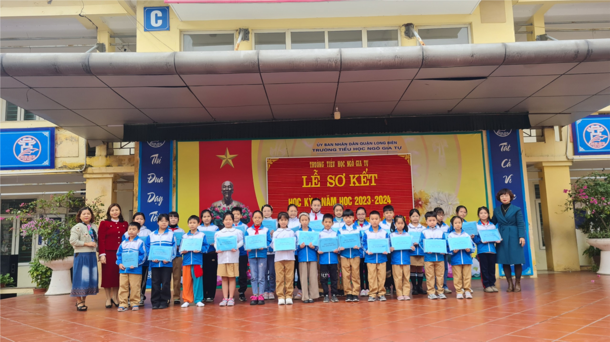 Trong không khí vui tươi của nhân dân cả nước chào mừng năm mới 2024, sáng ngày 15/01/2024, thầy và trò trường Tiểu học Ngô Gia Tự tổ chức Lễ sơ kết học kì I, năm học 2023-2024. Lễ sơ kết nhằm đánh giá lại nửa chặng đường của một năm học mà thầy và trò nhà trường đã, đang và tiếp tục nỗ lực phấn đấu, thực hiện tốt các nhiệm vụ trọng tâm của năm học.