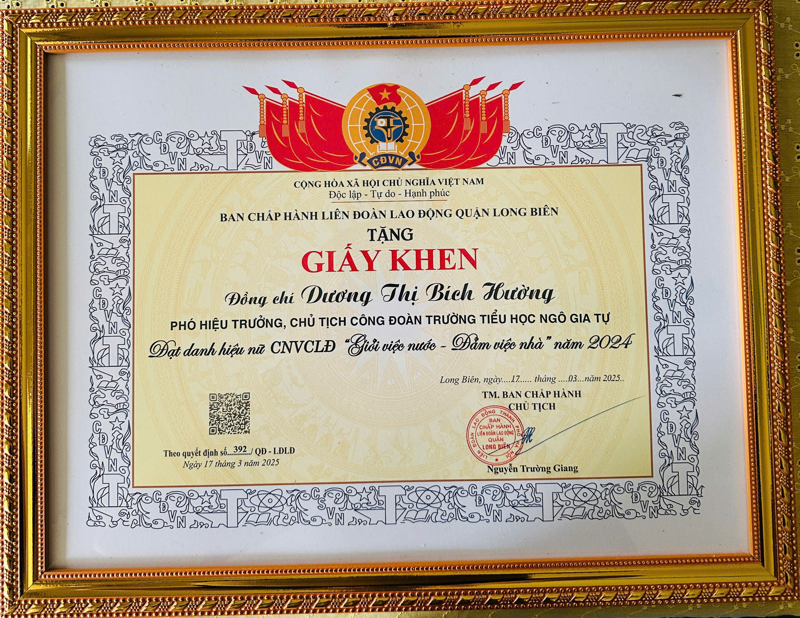 Dưới đây là một số hình ảnh cô giáo Dương Thị Bích Hường nhận danh hiệu: " Giỏi việc nước, đảm việc nhà" năm 2024.