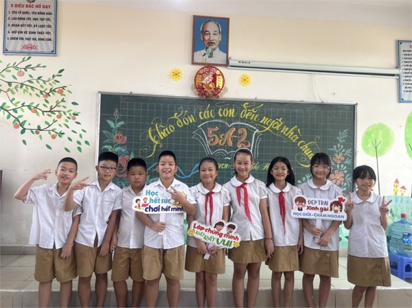 Tập ảnh : Giáo viên khối 5 hào hứng chào đón các con học sinh yêu thương.