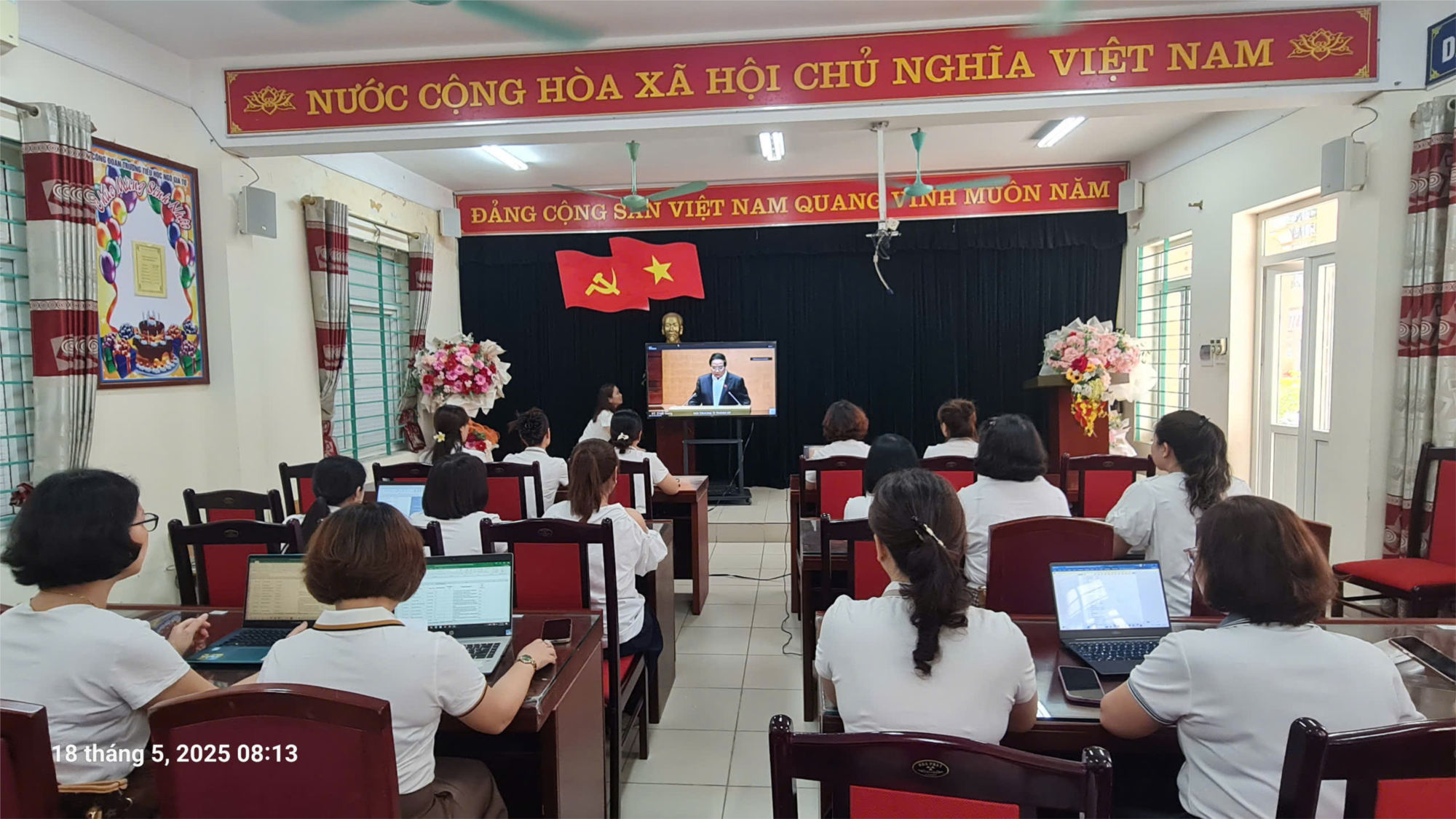 Cùng với cả nước, trường Tiểu học Ngô Gia Tự tổ chức tiếp sóng Hội nghị toàn quốc quán triệt, triển khai thực hiện Nghị quyết số 66-NQ/TW và Nghị quyết số 68-NQ/TW của Bộ Chính trị vào 8h00 sáng ngày 18/5/2025 ( chủ nhật).