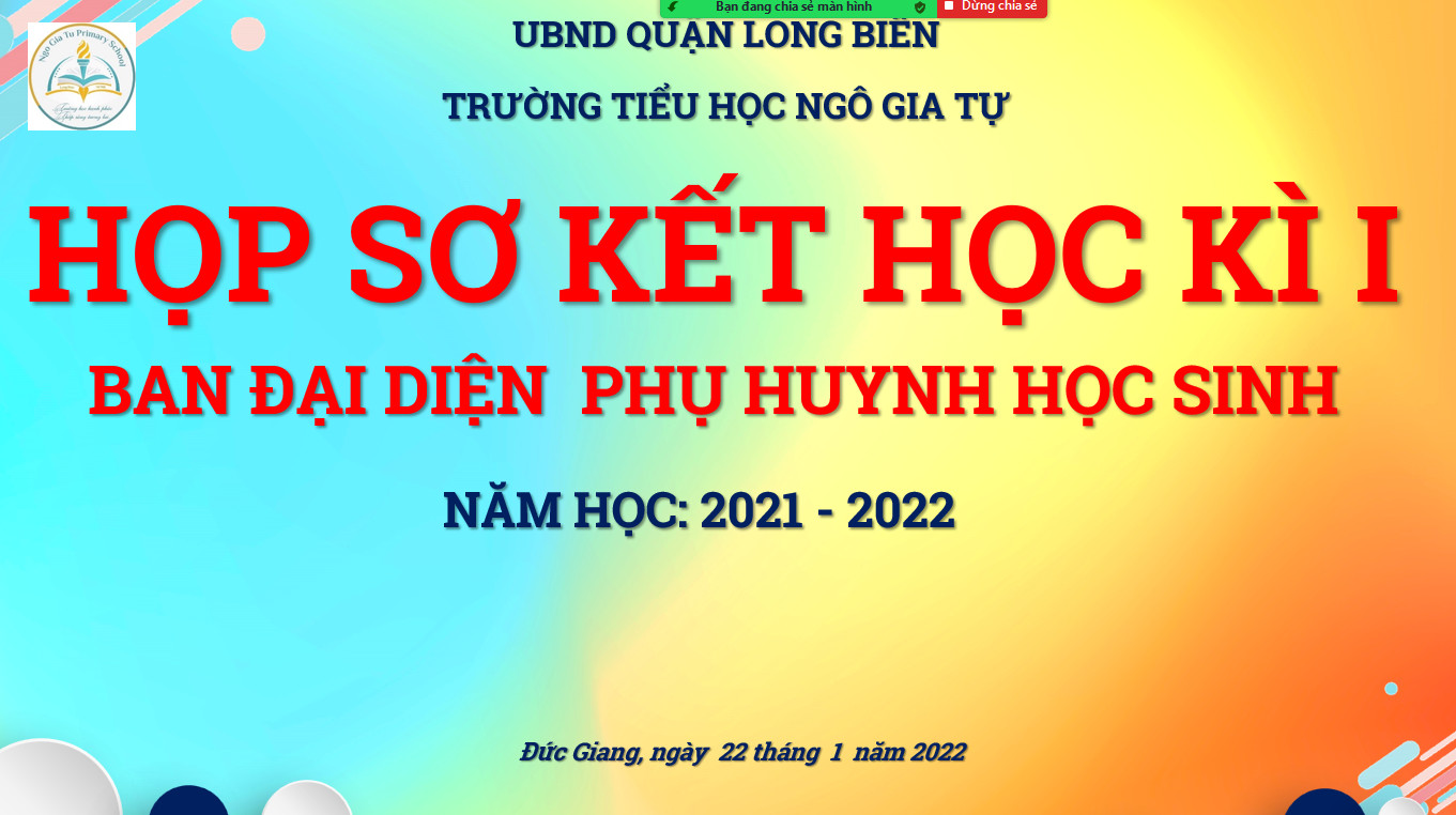 Thực hiện quy chế hoạt động, kế hoạch hoạt động của nhà trường, Ban đại diện cha mẹ học sinh trường TH Ngô Gia Tự, 16 giờ ngày 22 tháng 01 năm 2022 trường Tiểu học Ngô Gia Tự tổ chức họp Ban đại điện cha mẹ học sinh cuối học kỳ I qua ứng dụng ZOOM.