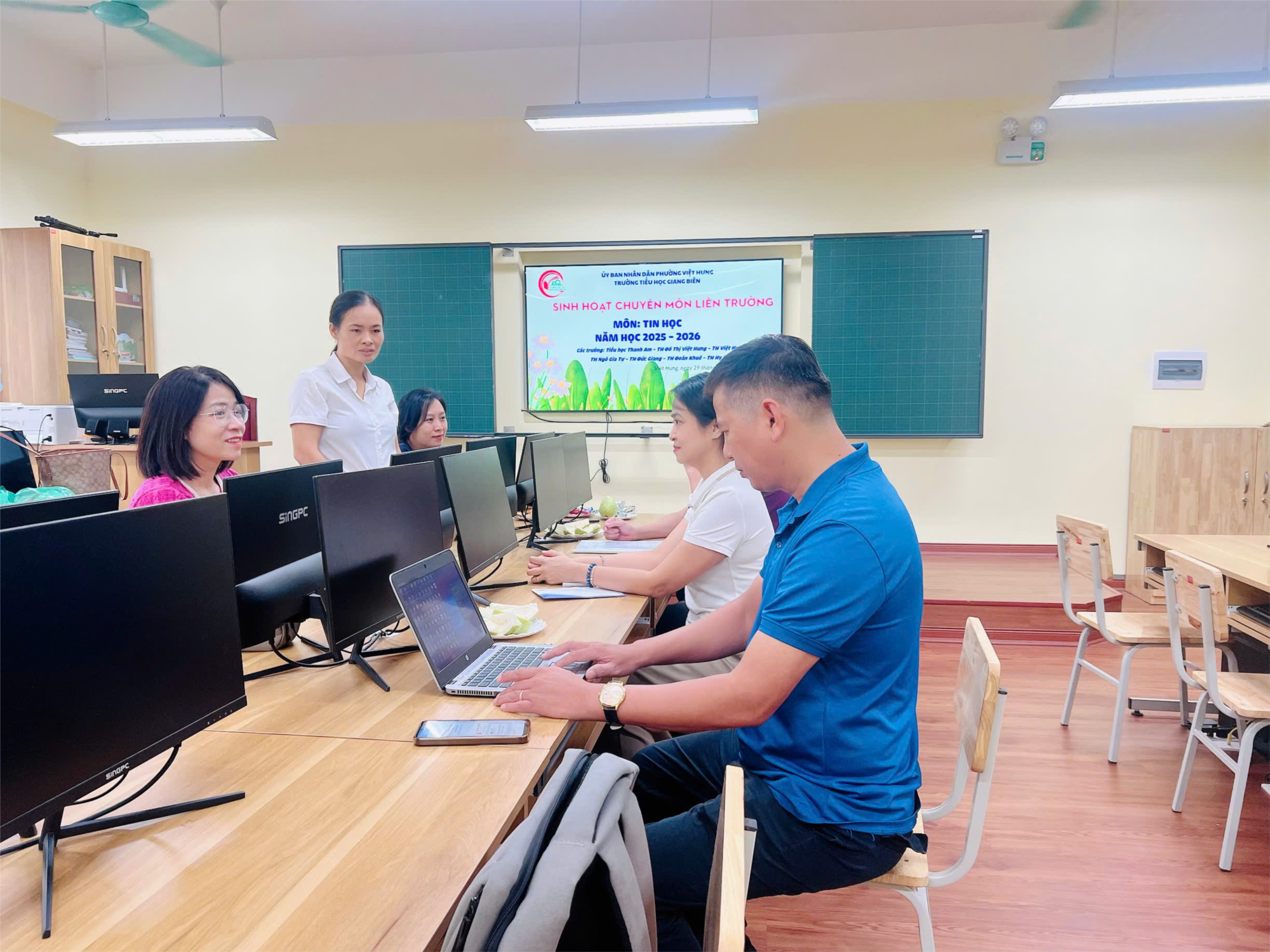 Sáng ngày 29/9/2025, tại Trường Tiểu học Giang Biên, Cụm trường Tiểu học Phường Việt Hưng đã tổ chức buổi sinh hoạt chuyên môn tháng 9 – môn Tin học với sự tham dự của các đơn vị trong cụm: Giang Biên, Thượng Thanh, Ngô Gia Tự, Hy Vọng, Việt Hưng, Đoàn Khuê, Đức Giang, ĐT Việt Hưng và Thanh Am. Đại diện Ban Giám hiệu có đồng chí Trần Thị Thanh Hương – Phó Hiệu trưởng Trường Tiểu học Giang Biên dự và chỉ đạo.