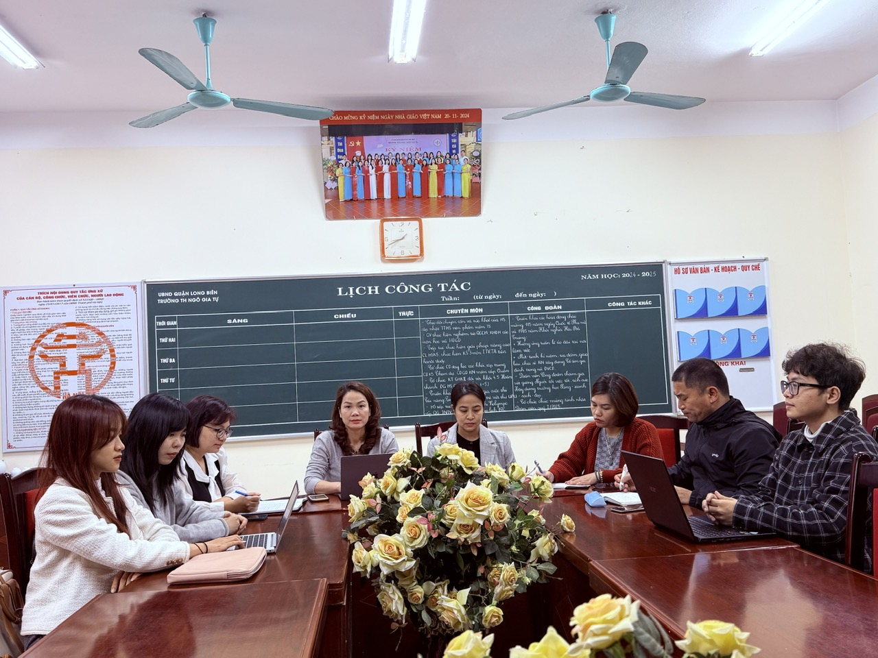 Sáng ngày 10/03/2025, Tổ bộ môn trường Tiểu học Ngô Gia Tự tổ chức sinh hoạt chuyên môn: Sơ kết các hoạt động tháng 2, triển khai công tác tháng 3 và thống nhất hoàn thành đánh giá nhận xét giữa HK2