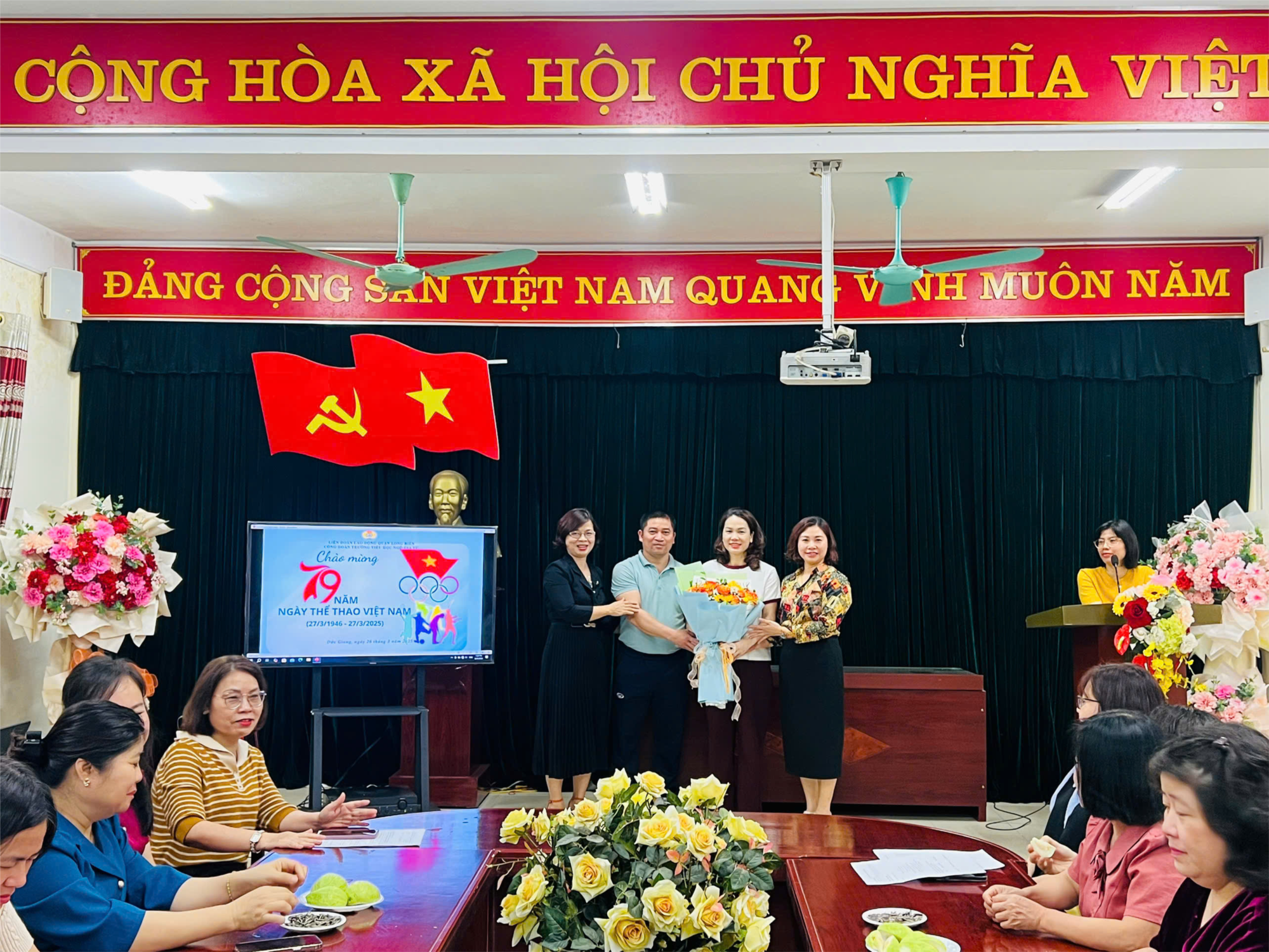 Nhân dịp kỷ niệm 79 năm Ngày Thể thao Việt Nam (27/3/1946, 27/3/2025 ), Ban Chấp hành Công đoàn trường Tiểu học Ngô Gia Tự đã tổ chức buổi gặp gỡ và chúc mừng hai đồng chí giáo viên thể dục của nhà trường: Đào Thị Thu Hường và Nguyễn Trọng Hồi.