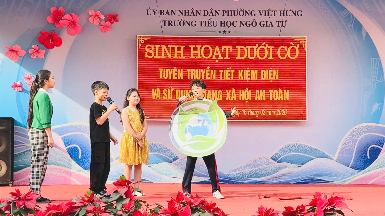 Sáng ngày 16/3, trong không khí trong trẻo của buổi sớm đầu tuần, thầy và trò Trường Tiểu học Ngô Gia Tự đã cùng tham dự giờ chào cờ tuần 26 với nội dung tuyên truyền thiết thực: tiết kiệm điện và kỹ năng sử dụng mạng xã hội an toàn – những vấn đề gần gũi, gắn liền với đời sống hằng ngày của mỗi học sinh.
