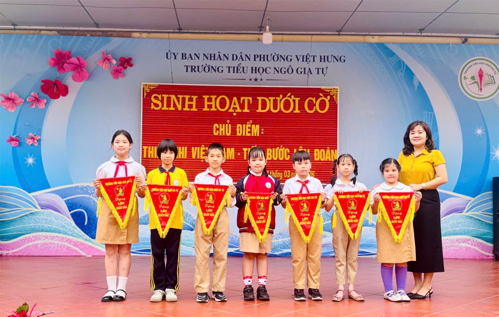 Trong không khí thi đua sôi nổi hướng tới ngày 26/3 – Ngày thành lập Đoàn TNCS Hồ Chí Minh, sáng ngày 23/3, thầy và trò Trường Tiểu học Ngô Gia Tự đã tổ chức giờ sinh hoạt dưới cờ tuần 27 với chủ điểm “Thiếu nhi Việt Nam – Tiến bước lên Đoàn” – một hoạt động giáo dục ý nghĩa, góp phần bồi dưỡng lý tưởng sống và khơi dậy niềm tự hào trong mỗi học sinh.