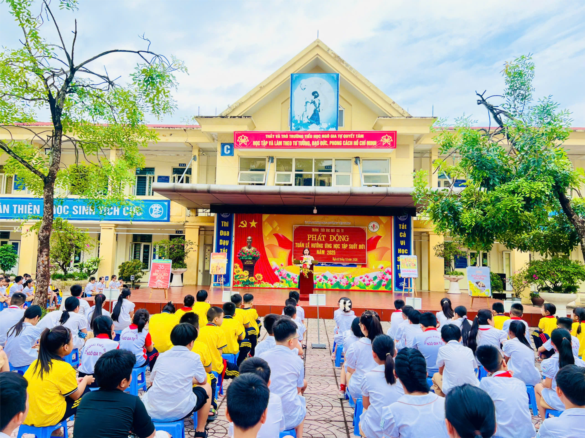 Sáng ngày 02 tháng 10 năm 2025, Trường Tiểu học Ngô Gia Tự long trọng tổ chức Lễ phát động “Tuần lễ hưởng ứng học tập suốt đời” năm 2025 với chủ đề: “Học để phát triển bản thân, làm chủ tri thức và công nghệ, góp phần xây dựng đất nước hùng cường, thịnh vượng”.