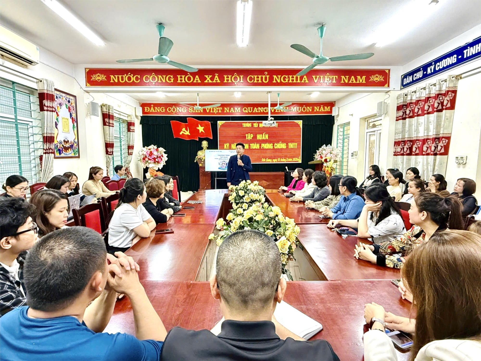 Chiều ngày 11/3/2025, nhà trường đã phối hợp với Công ty cổ phần Viện an toàn Việt Nam tổ chức tập huấn cho CBGVNV, đại diện PHHS các lớp về