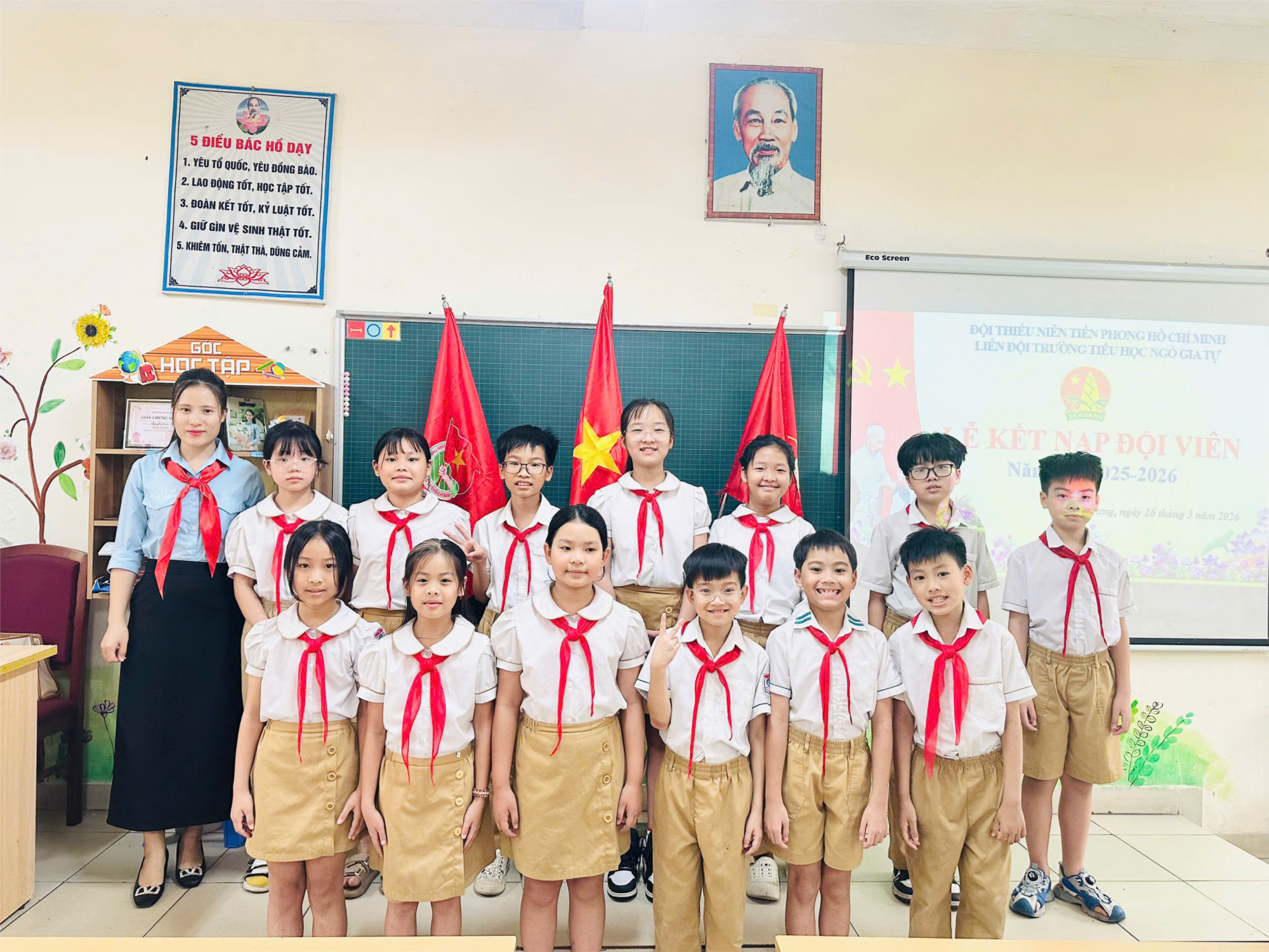 Trong không khí thi đua sôi nổi chào mừng 95 năm ngày thành lập Đoàn TNCS Hồ Chí Minh (26/3/1941 – 26/3/2026), Liên đội Trường Tiểu học Ngô Gia Tự đã long trọng tổ chức Lễ kết nạp Đội viên đợt 2 cho 120 em học sinh tiêu biểu – những “mầm xanh” đang từng bước trưởng thành dưới mái trường thân yêu.