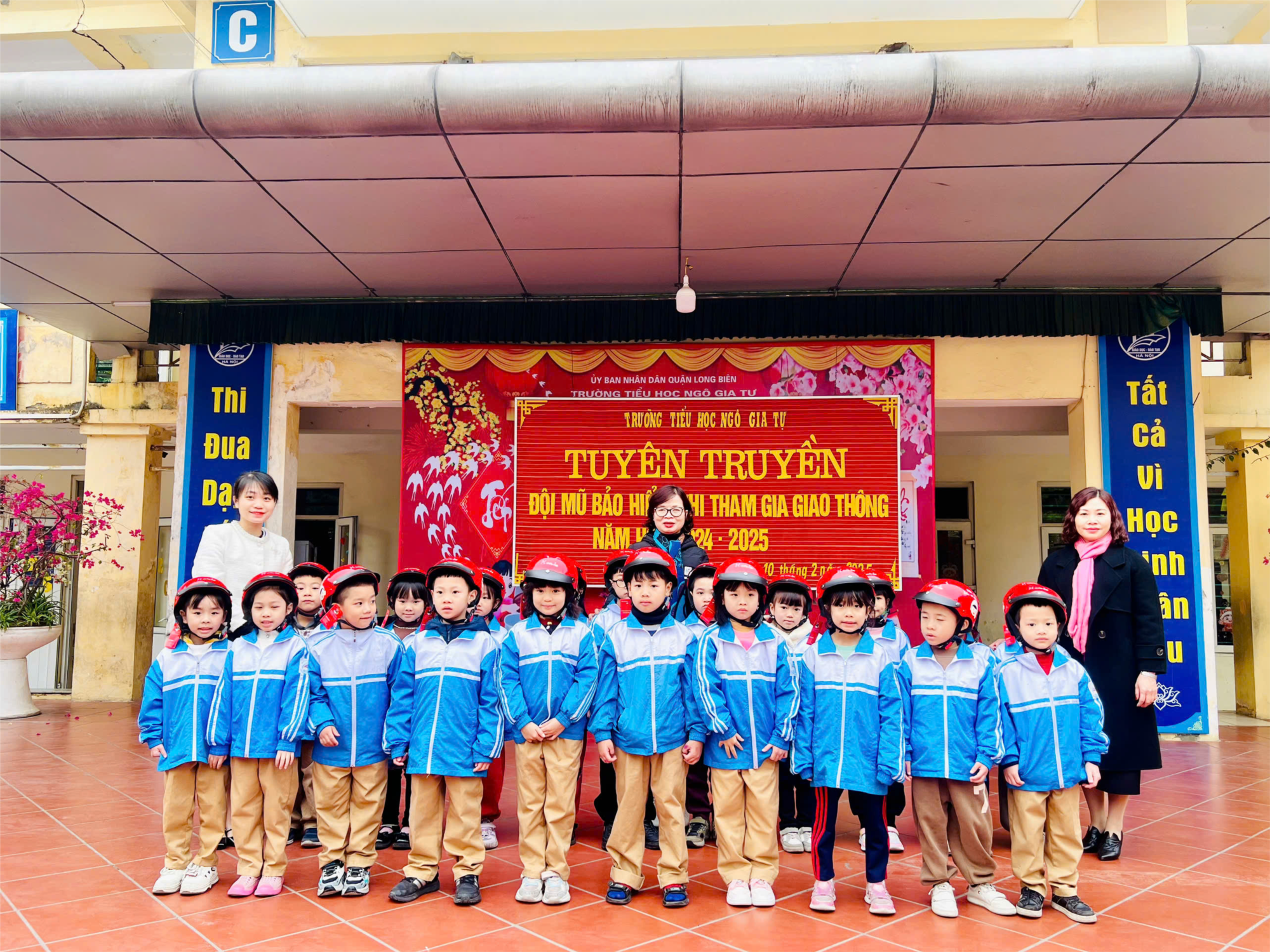 Nhà trường mong rằng những chiếc mũ bảo hiểm xinh xắn sẽ luôn là người bạn đồng hành đáng tin cậy, giúp bảo vệ các em trên mọi hành trình. Đặc biệt, khi cùng bố mẹ đến trường, các em hãy thực hiện tốt mô hình “Cổng trường an toàn – văn minh” để cùng nhau xây dựng một môi trường giao thông an toàn hơn.