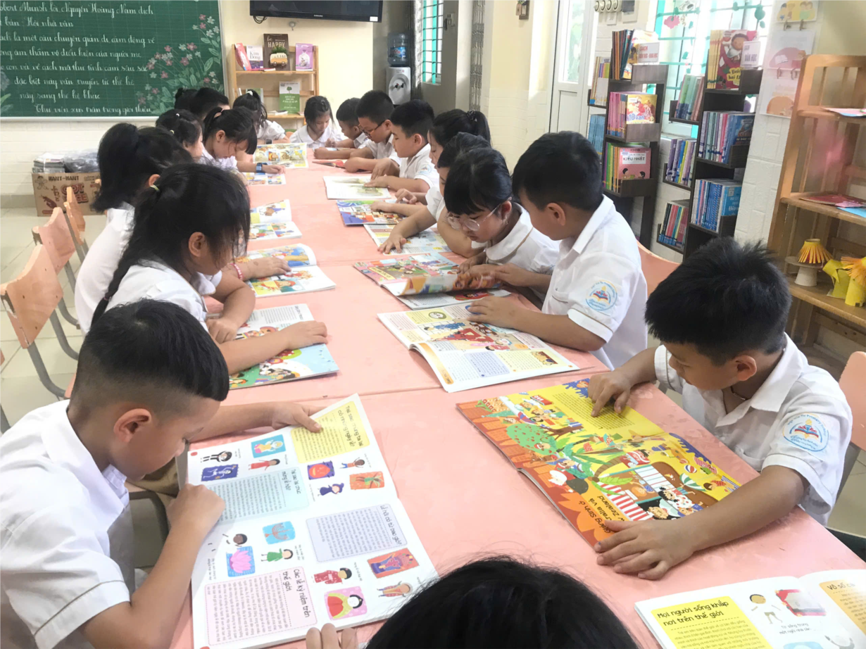 Học sinh đọc sách thư viện