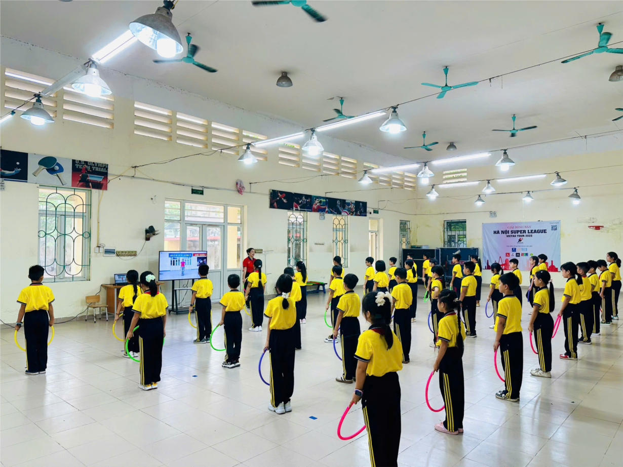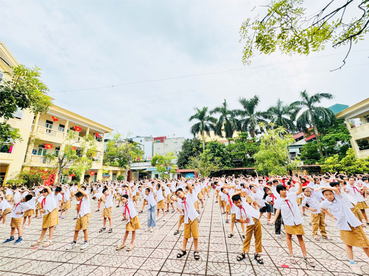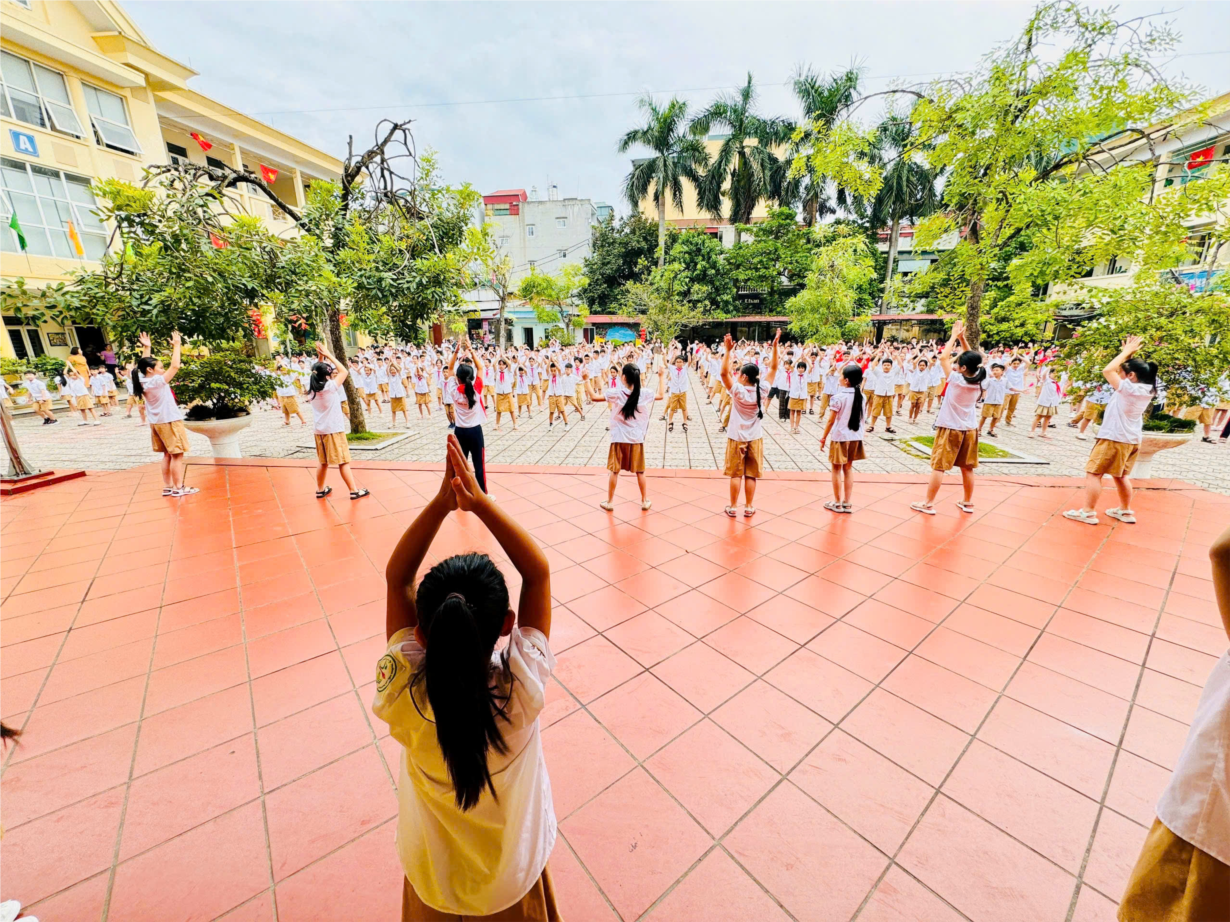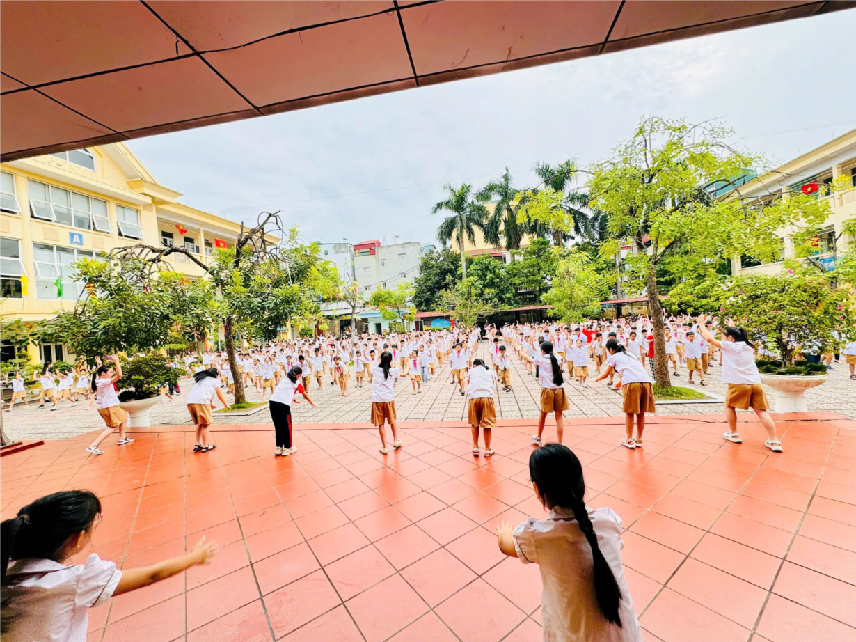 Ảnh học sinh hoạt động tập thể đầu giờ