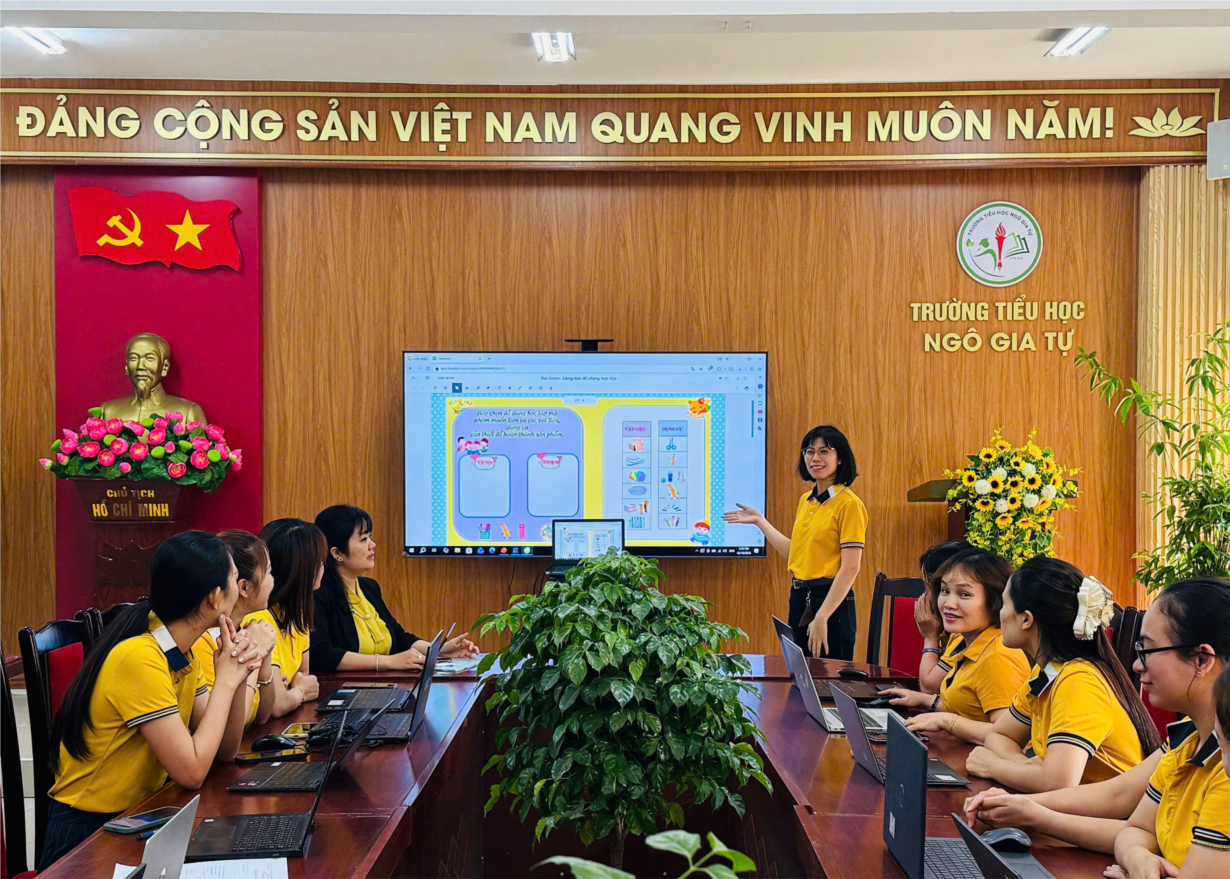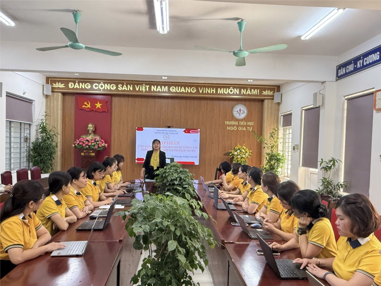 Khối 2 Tham dự Tập huấn ứng dụng tính năng bài giảng tương tác trên nền tảng học và thi trực tuyến.