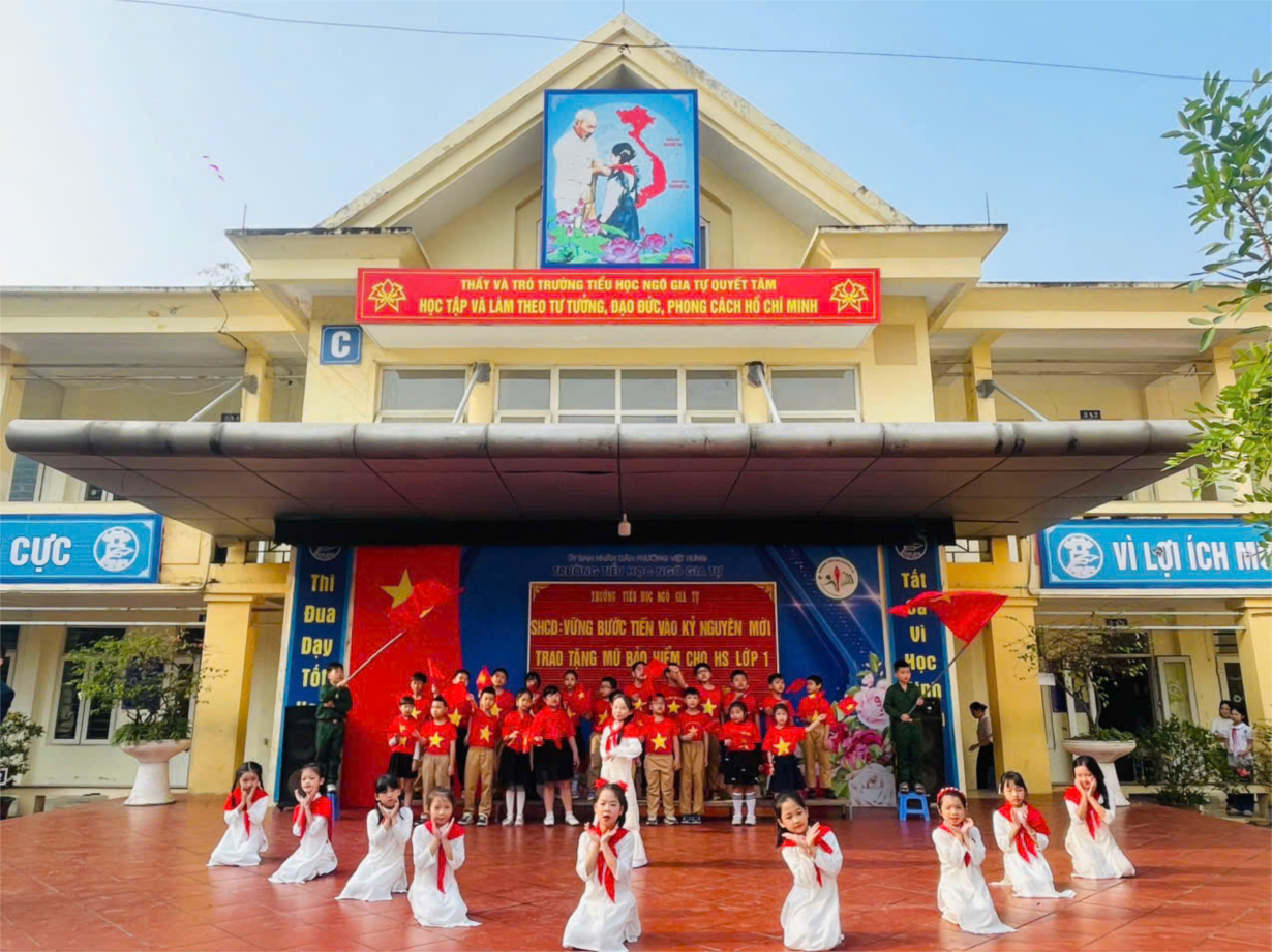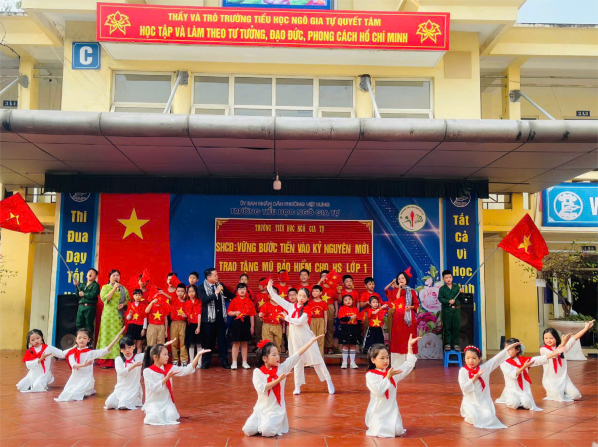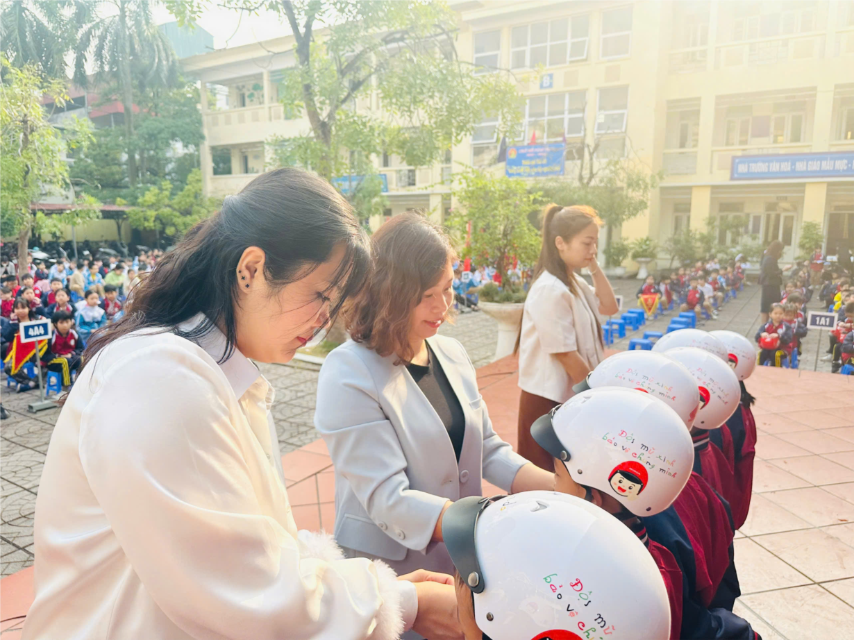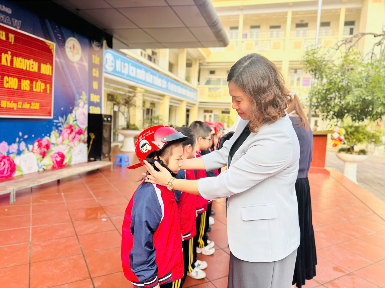 Sinh hoạt chủ đề "Vững bước tiến vào kỉ nguyên mới"; Phát mũ bảo hiểm cho học sinh lớp 1