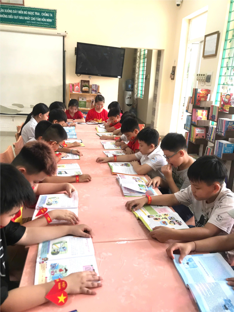 Học sinh lớp 2A2 trong giờ đọc sách TV