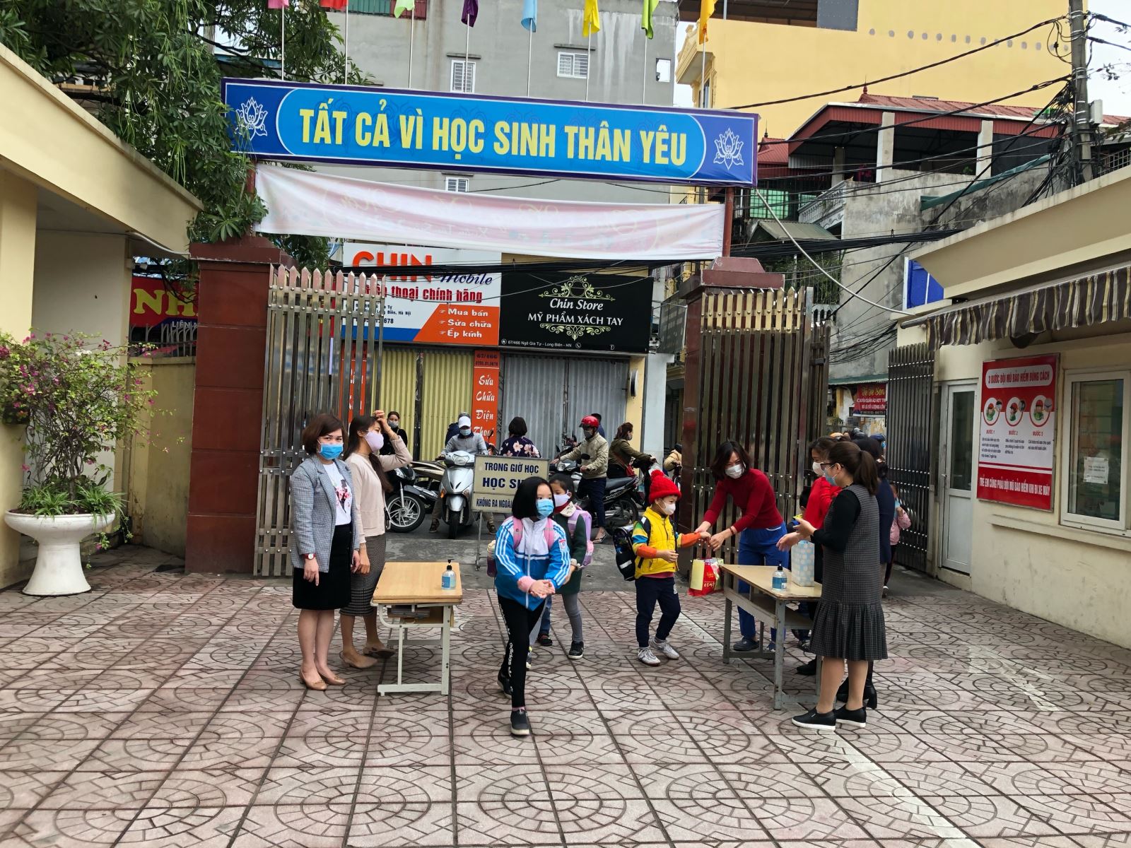 Ngay từ những ngày trước khi các con trở lại trường, mọi công tác vệ sinh phòng dịch cũng như chuyên môn đã được thầy cô nhà trường chuẩn bị hoàn tất. Khung cảnh sư phạm nhà trường được trang hoàng sáng, xanh, sạch đẹp và văn minh; mỗi lớp học đều được lau dọn, khử khuẩn đúng quy định của Bộ Y tế; công tác bán trú cũng được kiểm tra nghiêm ngặt, đúng quy trình.