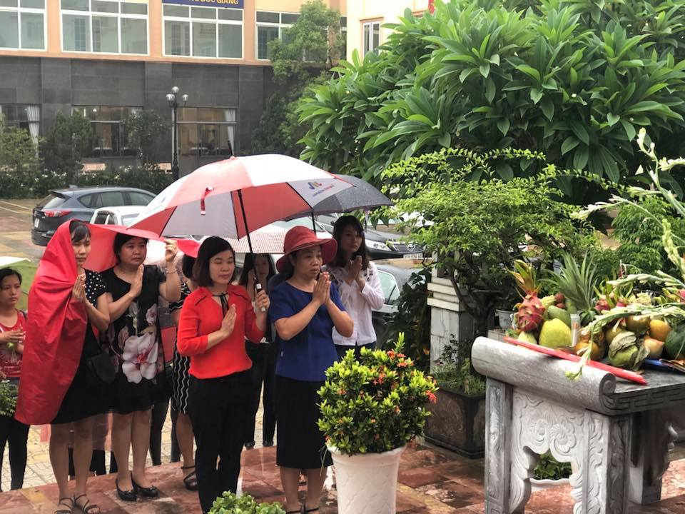 Tập thể CBGVNV nhà trường thắp hương tại đài tưởng niệm sáng ngày 27/07