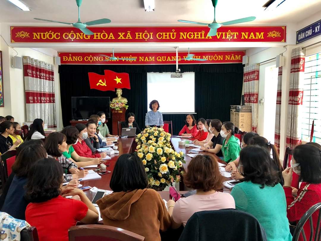 Đặc biệt ngày 27 / 2/2020, 100% cán bộ giáo viên, công nhân viên nhà trường tham gia tập huấn công tác phòng chống dịch để chuẩn bị các phương án, lên kế hoạch đón học sinh quay trở lại trường. Các thầy cô được nghe giới thiệu tình hình dịch bệnh đang diễn ra ở trong và ngoài nước . Tập huấn các nội dung phòng chống dịch . Tìm hiểu biện pháp phòng bằng nguồn lây ( Điều tra tiền sử học sinh đi, về từ vùng dịch) , các biện pháp phòng bằng đường lây ( Cách 2m, đeo khẩu trang, thông thoáng không khí, rủa tay và vệ sinh môi trường). Thực hành 5 bước đo thân nhiệt cho học sinh, tìm hiểu cách sàng lọc học sinh vòng 1 tại cổng trường, tại chân cầu thang , vòng 2 đo thân nhiệt học sinh khi đến lớp, quan sát phát hiện học sinh có biểu hiện mệt mỏi trong giờ học. Cách xử lý khi học sinh có biểu hiện sốt, cách vệ sinh lớp học trước và sau giờ ra chơi, cuối buổi học.