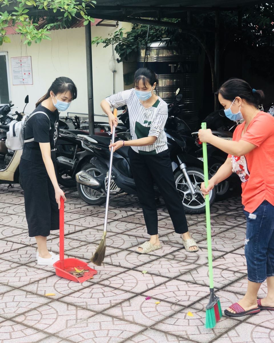 Ngày 18 tháng 9 năm 2021.Theo sự phân công chỉ đạo của BGH nhà trường các đồng chí CBGV,NV đã có mặt đầy đủ, đúng giờ để thực hiện tổng vệ sinh. Các đ/c GVNV đã tiến hành quét rọn, nhặt rác, nhổ cỏ, cắt bỏ nhưng cành cây thấp, gỡ bỏ khẩu hiệu, băng rôn đã hỏng, úp loại bỏ những dụng cụ chứa nước đọng,…. vệ sinh lớp học, quét mạng nhện, xử lý các khu vực còn đọng nước. Khối lượng công việc tuy nhiều nhưng với tinh thần đoàn kết và không quản khó khăn của mọi người vẫn đảm bảo khung cảnh nhà trường xanh, sạch, đẹp an toàn nên công việc đã được hoàn thành. Trong quá trình thực hiện CBGVNV cũng không quên thực hiện nghiêm túc công tác phòng dịch hàng đầu, đeo gang tay, khẩu trang, đảm bảo khoảng cách an toàn,..